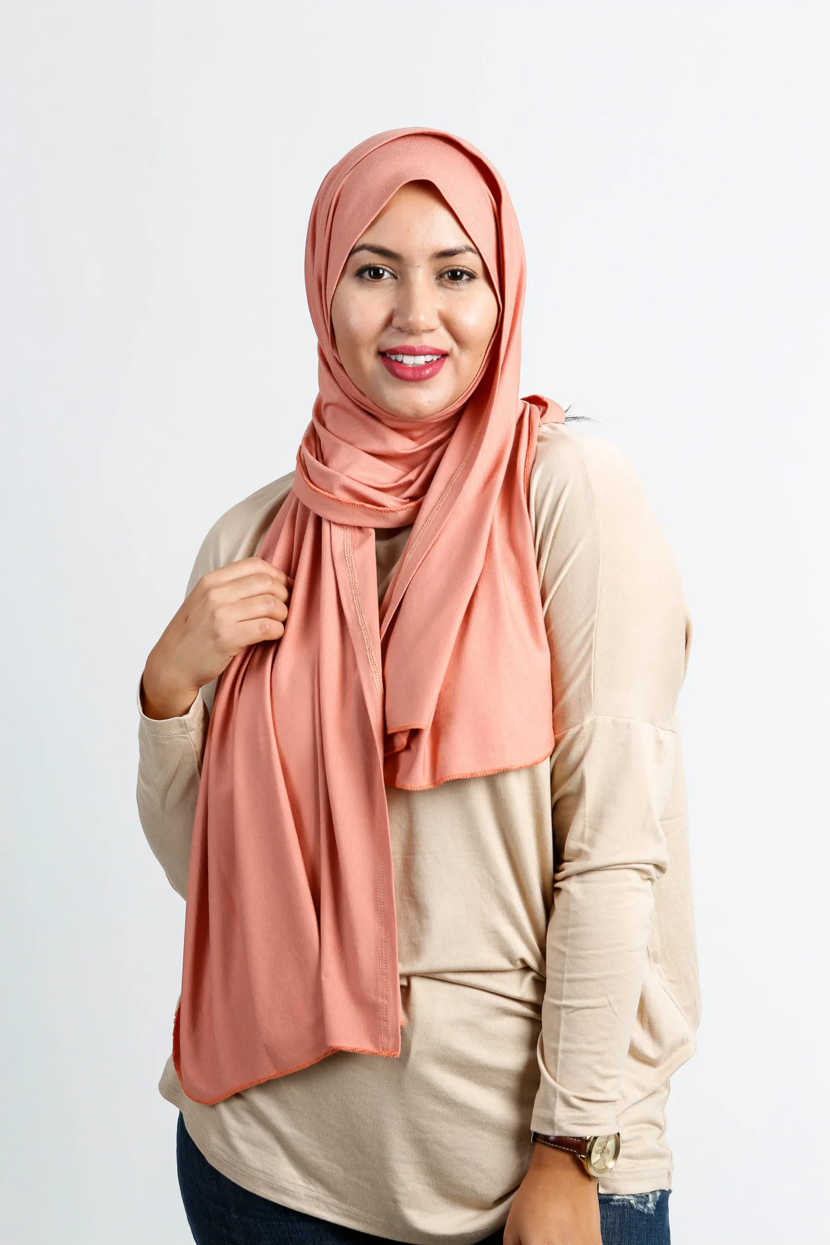 Hijab Jersey Cotton Peach for an Elegant and Casual Style