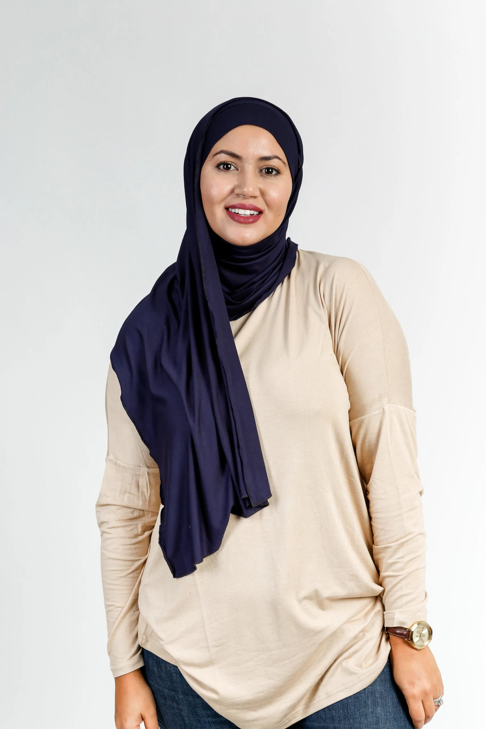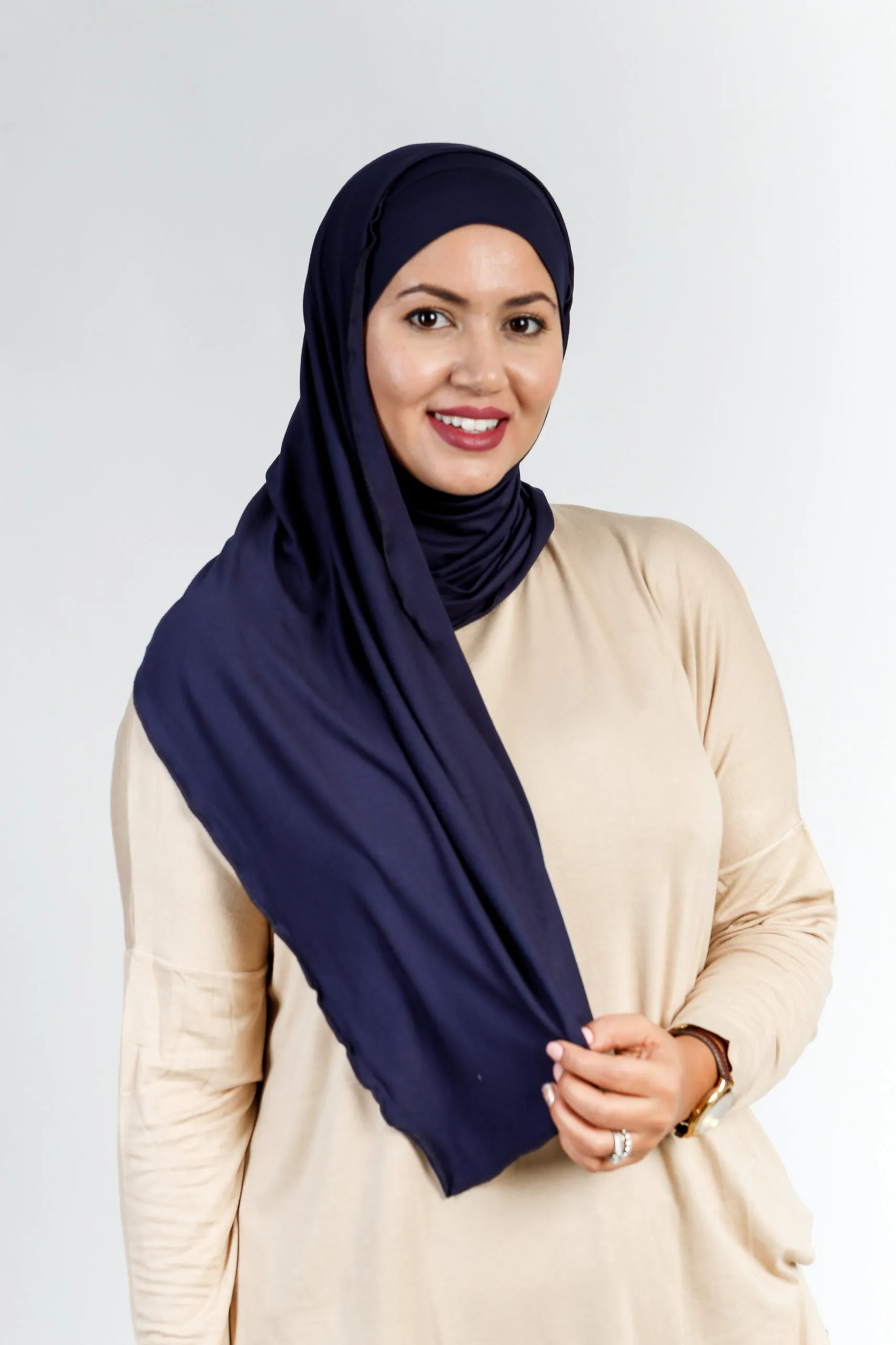 Dive into Innovation with Pinless Hijab Navy Blue, a Revolution in the World of Scarf Wearing: Ease, Comfort, and Elegance