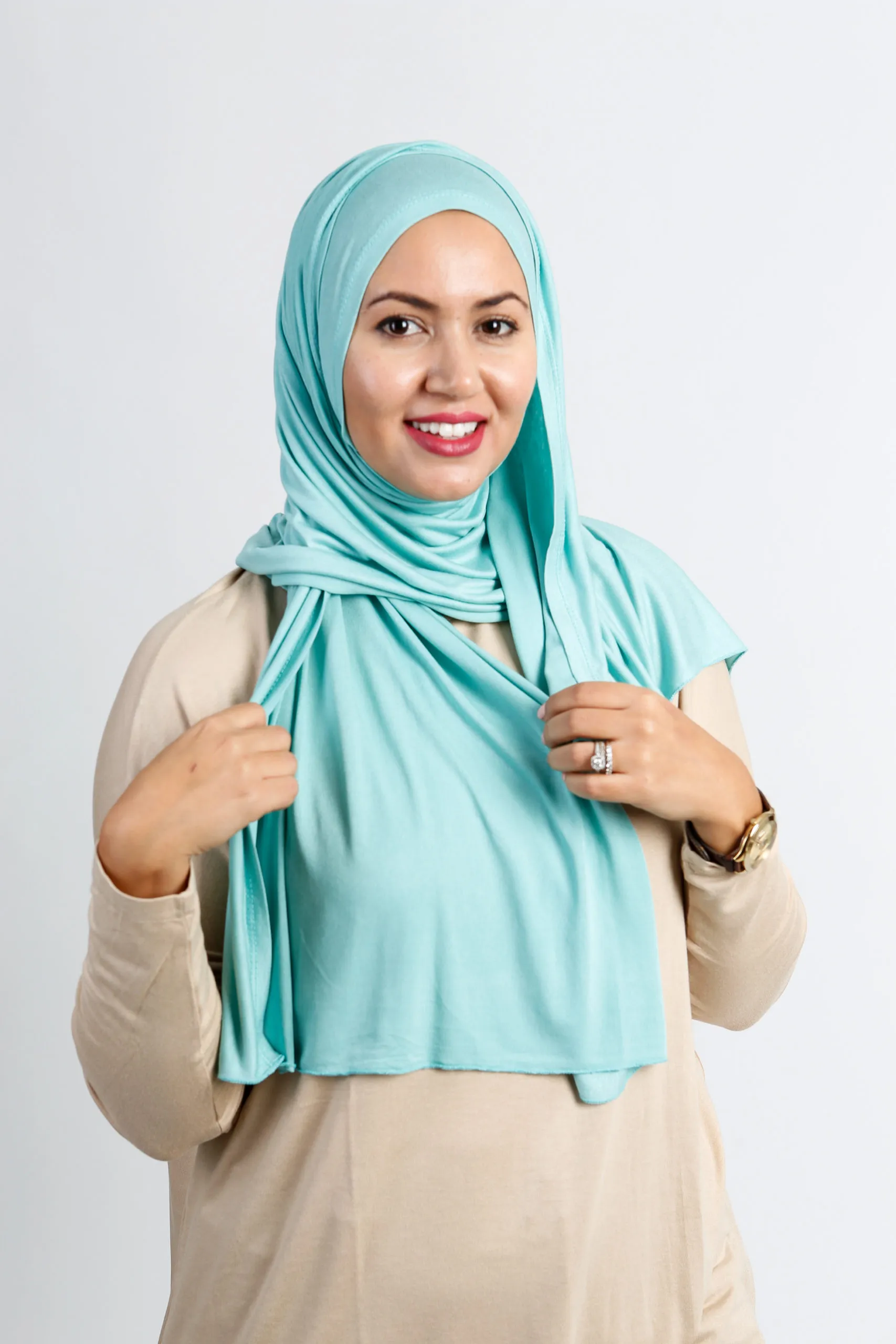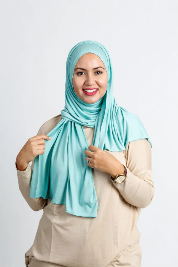 Ne manquez pas l’opportunité d’ajouter ce Foulard Jersey Coton Vert d’eau à votre garde-robe. Exprimez votre style avec ce Hijab polyvalent pour un look frais !