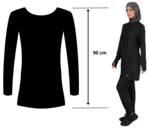 Avec son design unique, le haut Bleu-Brave propose une combinaison de tissus de qualité : un tissu uni bleu marine sur le devant et un subtil motif à carreaux bleus sur le dos, ajoutant une touche d’originalité tout en discrétion. Les manches longues sont équipées de trous au niveau des pouces pour un maintien parfait, idéal pour les exercices et les mouvements intenses. Ce vêtement de sport a été pensé pour offrir confort et aisance aux femmes voilées qui recherchent des options de sport adaptées à leur style de vie.