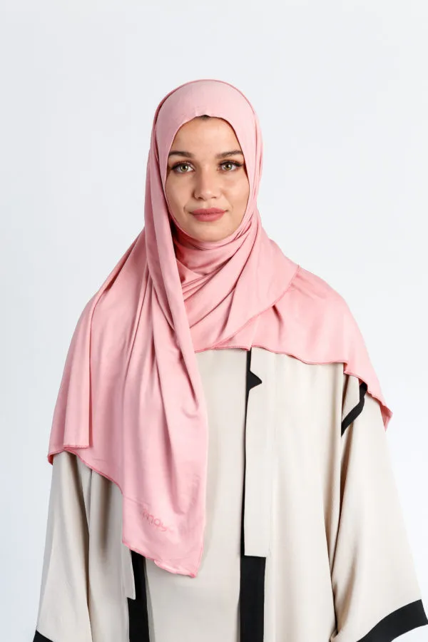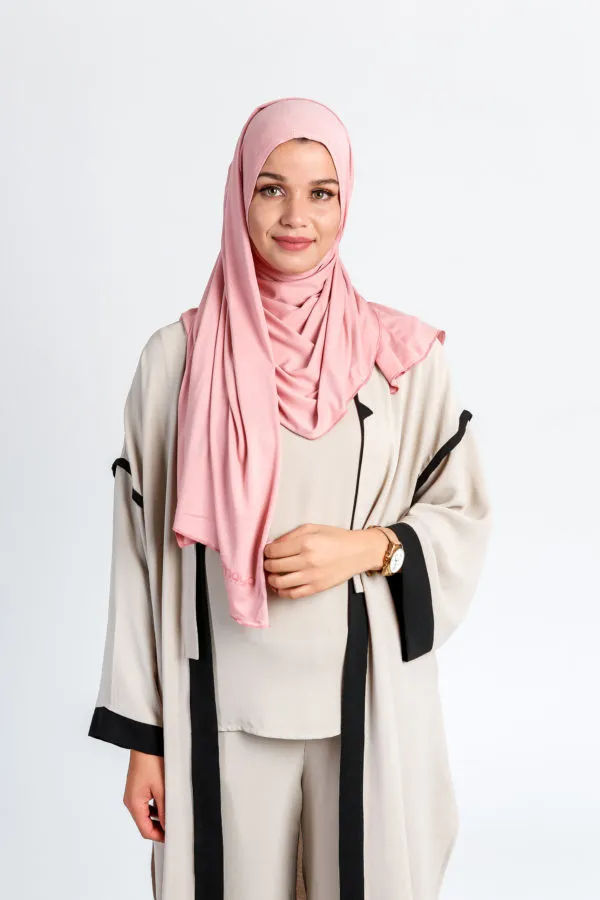 Découvrez l’Élégance Instantanée avec le Hijab à Enfiler Jersey Rose – Wrap & Go