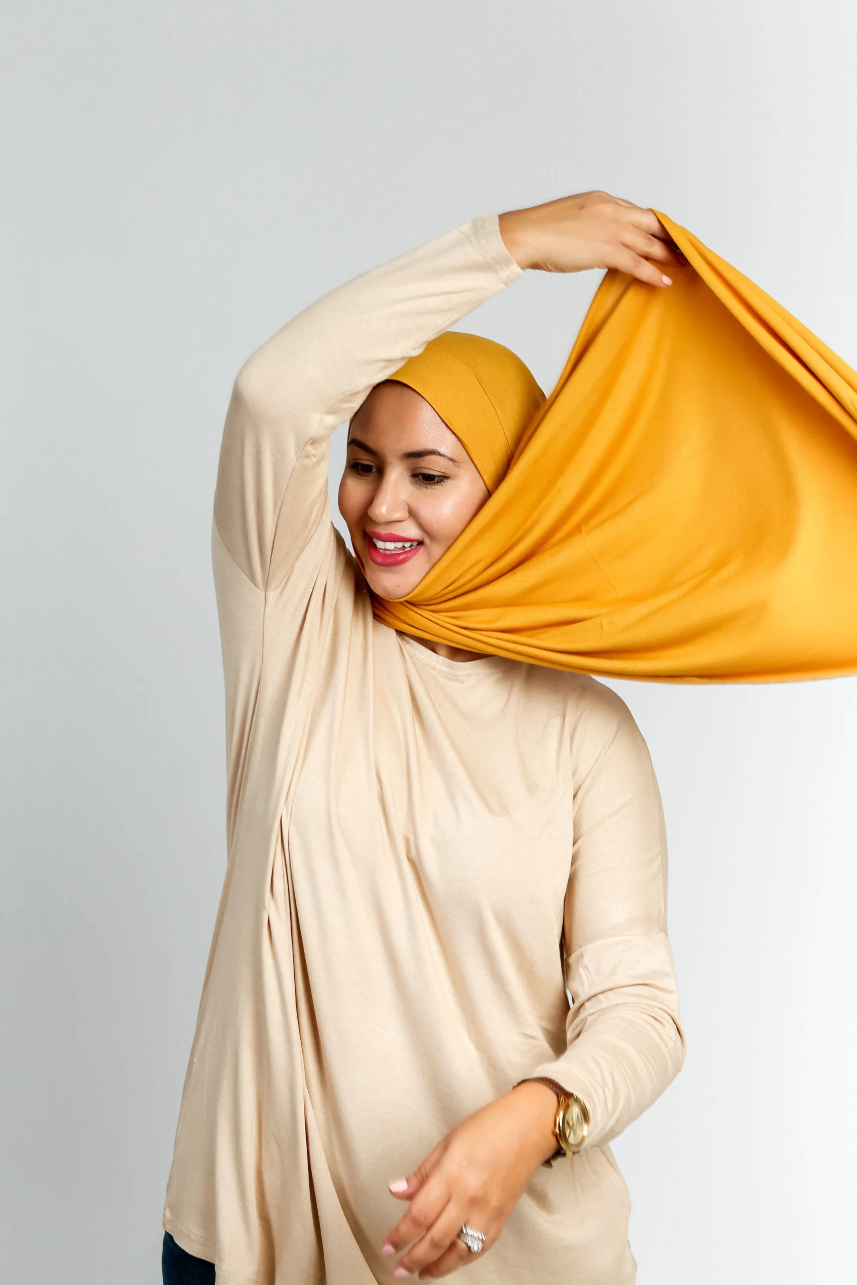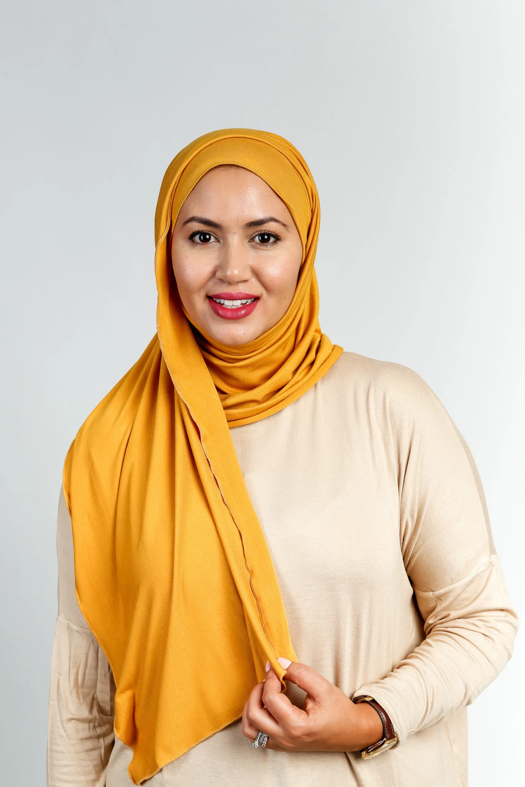 Chic Sans Effort : La Magie du Design Hijab Sans Épingles Moutarde