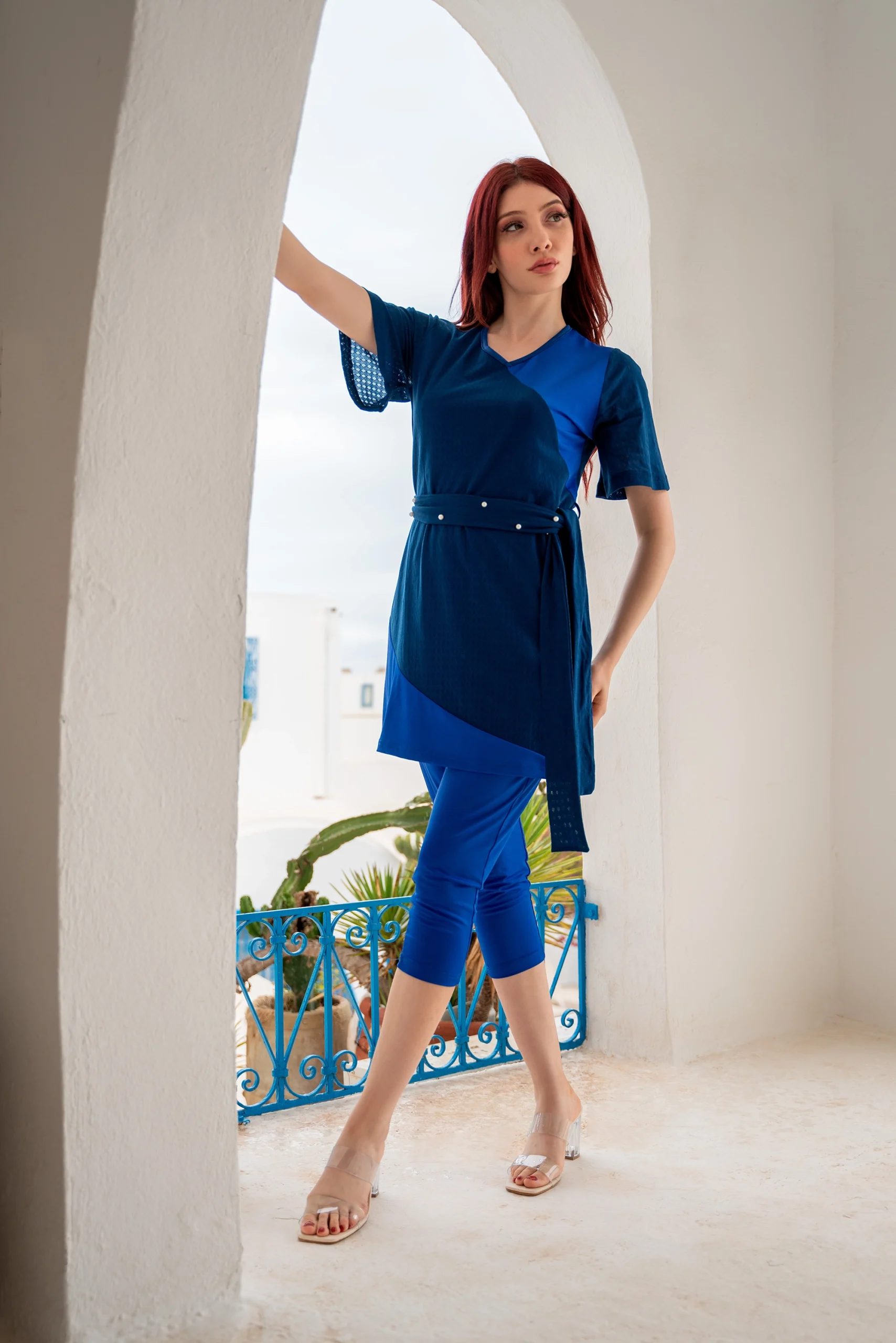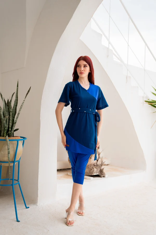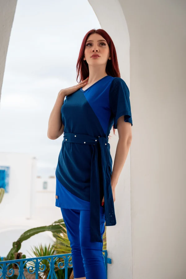 Le “Maillot De Bain Avec Short – Alya” se distingue par son short long qui offre une couverture parfaite tout en restant tendance. Le pull sans manche ajoute une touche de modernité, permettant une liberté de mouvement optimale. Avec une ceinture garnie de perles, ce maillot de bain ne se contente pas d’être fonctionnel, il apporte également une note d’élégance qui fera tourner les têtes sur la plage ou à la piscine.