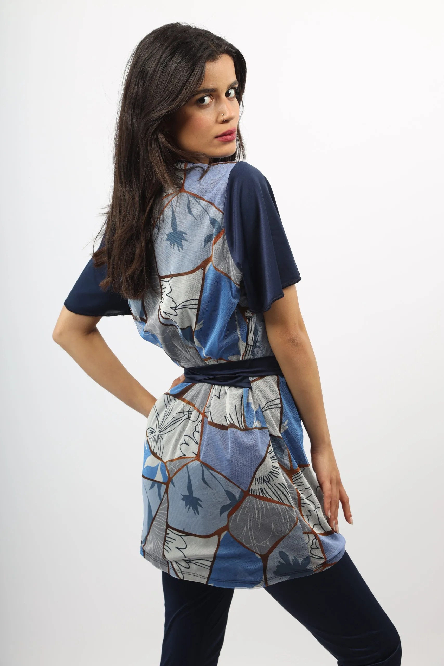 1. Tunique Col V avec Impression en Tulle : Une pièce maîtresse élégante, mettant en valeur des motifs captivants.